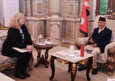प्रधानमन्त्रीसँग नेपालका लागि फ्रान्सका राजदूतको शिष्टाचार भेट