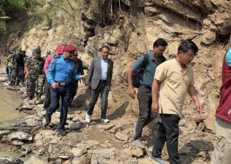 मन्त्री घिसिङद्वारा झापाका बाढी प्रभावित क्षेत्रको अवलोकन