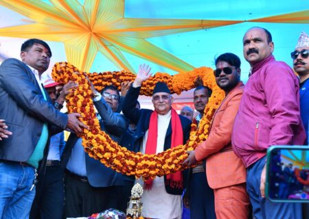 रौतहटमा एकसय किलोको माला लगाएपछि ओलीले भने-अब माधव नेपालको चुनाव जित्ने दिन गए