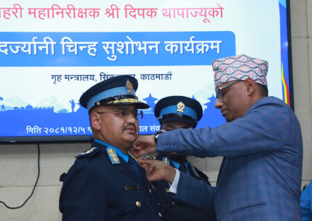 प्रहरी महानिरीक्षक थापालाई दर्ज्यानी चिन्ह प्रदान