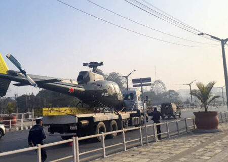ट्रकमा राखेर सैनिक मुख्यालयबाट सेनाको हेलिकप्टर त्रिभुवन विमानस्थल लगिँदै
