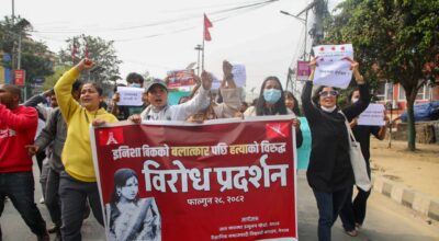 इनिशाको न्यायको माग गर्दै काठमाडौँमा प्रदर्शन