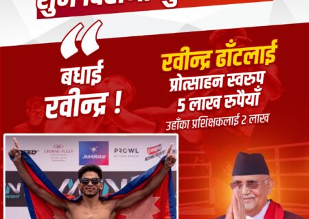 रवीन्द्र ढाँटलाई २ लाख र खोखो विश्वकप उपविजेता टोलीलाई काठमाडौं महानगरबाट २२ लाख प्रदान