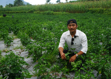 अकबरे खुर्सानीखेतीमा व्यस्त कराते खेलाडी