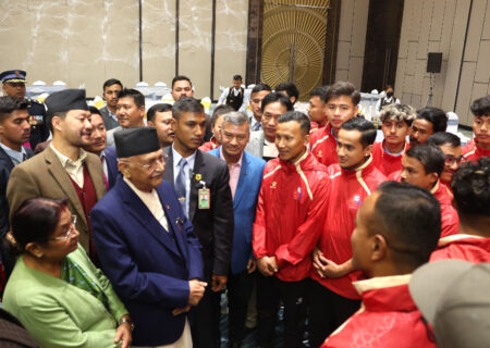 प्रधानमन्त्री र केपी ओली कप फुटबल च्याम्पियनसिपका खेलाडीबीच भेट