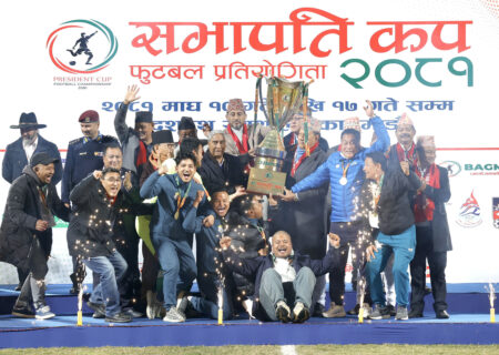 आयोजक बागमतीलाई पराजित गर्दै संकटालाई सभापति कप फुटबलको उपाधि