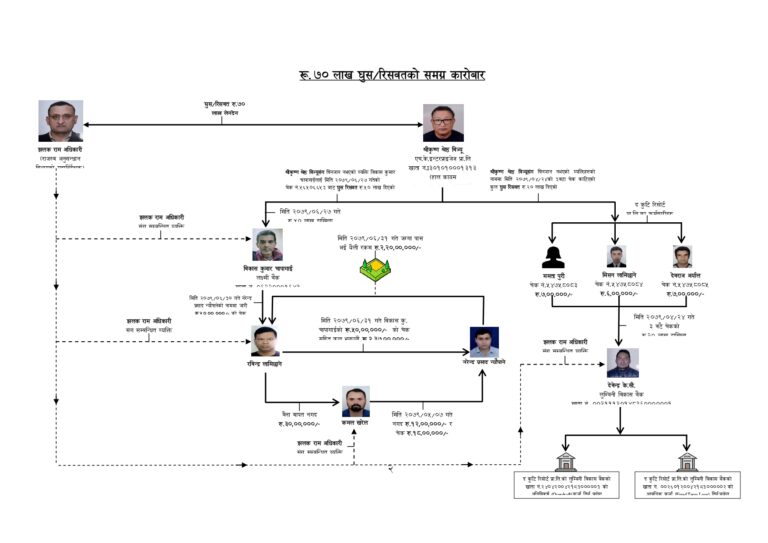 इन्टरप्राइजेजका संचालक श्रीकृष्ण श्रेष्ठबाट घुस लिँदा विकास चापागाई, देवेन्द्र केसी, रविन्द्र लामिछाने लगायतसँग सल्लाह तथा मिलेमतो गरेको पाइएको अख्तियारले दाबी गरेको छ ।