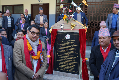 काठमाडौँस्थित भारतीय राजदूतावासका कन्सुलर अनिवासकुमार सिंह र जिल्ला समन्वय समितिका प्रमुख राजकुमार थापाले शिलाखेल अनावरण गरेर भवन उद्घाटन तथा हस्तान्तरण गरेका हुन् ।