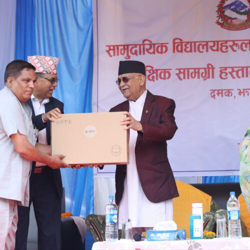 झापा । प्रधानमन्त्री केपी शर्मा ओलीले झापा, तेह्रथुम र ताप्लेजुङका १५ सामुदायिक विद्यालयलाई कम्प्युटरलगायत शैक्षिक सामग्री वितरण गरेका छन्।
