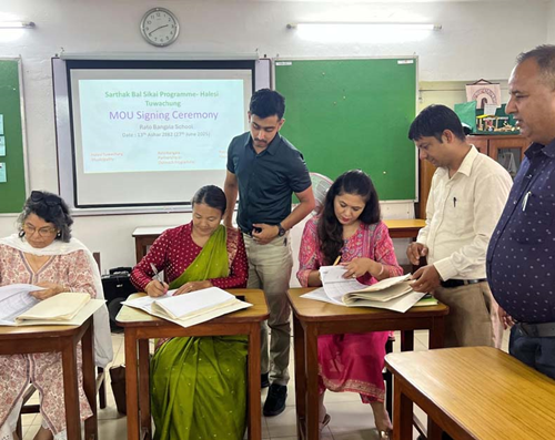 शैक्षिक गुणस्तर सुधारमा साझेदारी गर्ने विषयमा नगरप्रमुख राई, रातो बङ्गला स्कुलका निर्देशक शान्ता दीक्षित र फाउन्डेसनका टोलीप्रमुख एलिना रञ्जितले समझदारीपत्रमा हस्ताक्षर गरेका हुन् ।