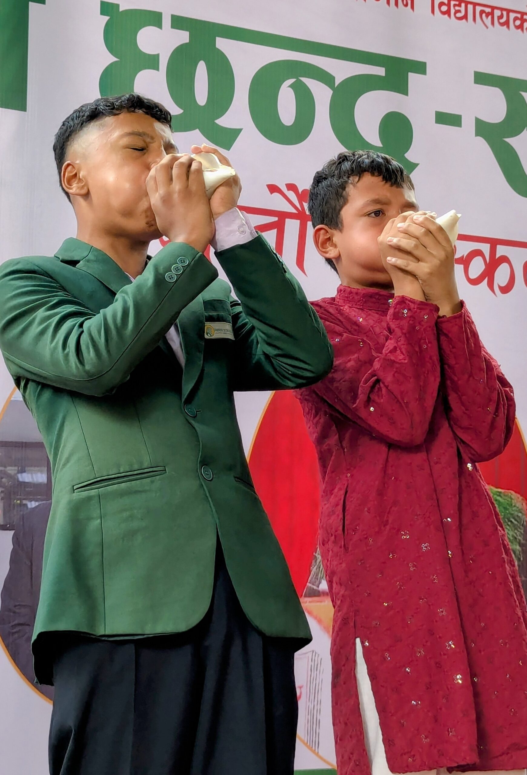 कार्यक्रममा कक्षा १ र २ का नानीहरूले कवि माधवप्रसाद घिमिरे, रत्न विरही घिमिरे तथा श्यामप्रसाद शर्माका बालकविता सङ्गीतमा प्रस्तुत गरे । प्रमुख अतिथिबाट दीपप्रज्वलन एवं कक्षा १० द्वारा प्रस्तुत मङ्गलाचरणसँगै समारोहको वातावरण अझै भक्तिपूर्ण बनेको थियो । राष्ट्रगान र स्वागत–मन्तव्यपछि सुरु भएका प्रस्तुतिहरूमा ‘कुमारी नृत्य’ले विशेष रूपमा सबैको ध्यान खिचेको देखिन्थ्यो ।
