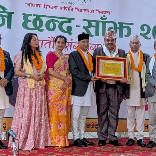 काठमाडौँ । काठमाडौंका पेप्सीकोलास्थित पाणिनी विद्यालयले यसवर्ष पनि भानुजयन्तीको पूर्वसन्ध्यामा छन्दसाँझ कार्यक्रम आयोजना गरेको छ । यो छन्द साँझको सातौँ संस्करण हो । कार्यक्रममा देशका विशिष्ट कवि, साहित्यकार, सञ्चारकर्मी, समस्त विद्यालयपरिवार एवम् अभिभावकहरूको उपस्थिति थियो ।