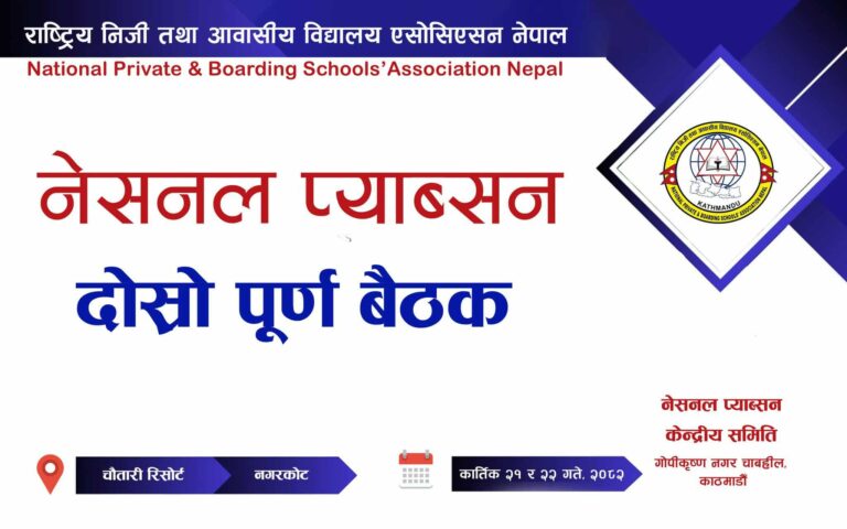 काठमाडौं । राष्ट्रिय निजी तथा आवासीय विद्यालय एसोसिएसन नेपाल(नेशनल प्याब्सन) को दोस्रो पूर्ण बैठक आजदेखि सुरु भएको छ । बैठकमा राष्ट्रिय अध्यक्ष वरिष्ठ उपाध्यक्षहरु, प्रमुख सल्लाहकारलगायत सल्लाहकारहरु, उपाध्यक्षहरु, कोषाध्यक्ष, उपमहासचिवहरु, सचिवहरु, सह–कोषाध्यक्ष र केन्द्रीय सदस्यहरु  सहभागी छन् ।