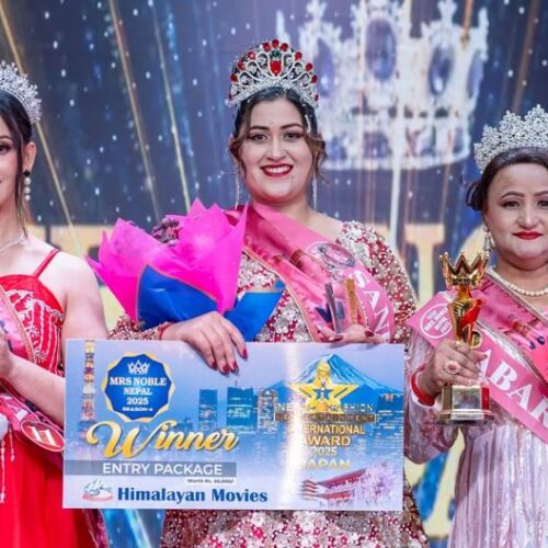 काठमाडौं । ‘मिसेस नोवेल नेपाल २०२५’ को उपाधि सन्ध्या लामिछानेले जितेकी छन् । शनिबार राजधानीको ज्यापु प्रज्ञा एकेडेमीमा सम्पन्न कार्यक्रममा ‘मिसेस नोवेलको ताजसँगै ‘नेपाल फेसन एण्ड इन्टरटेन्मेन्ट अर्वाड २०२५ टोकीयो जापान’ को लागी इन्ट्री प्याकेज समेत प्राप्त गरेकी छिन् ।