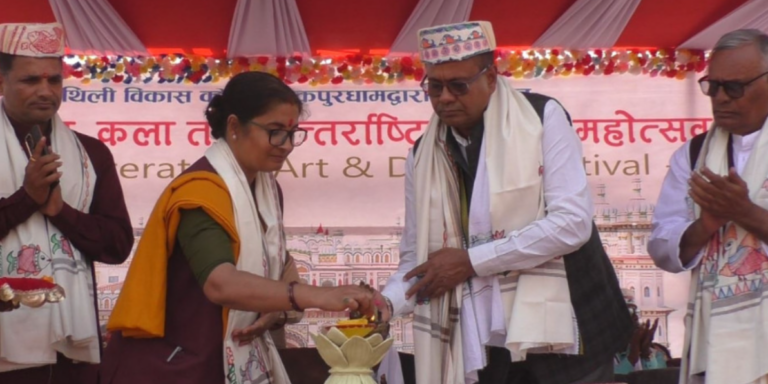 धनुषा । मैथिली भाषा, साहित्य र कलालाई नयाँ पुस्तासँग जोड्ने उद्देश्यसहित आयोजित चारदिने ‘जनकपुरधाम साहित्य, कला तथा अन्तरराष्ट्रिय नाट्य महोत्सव २०८२’ शुक्रबार सम्पन्न भएको छ ।