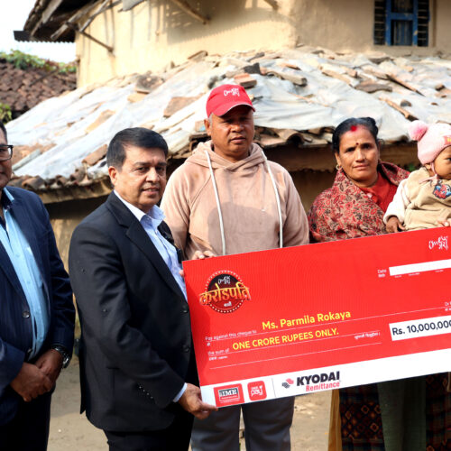 जापानको क्योदाइबाट आइएमई रेमिटमार्फत रकम पठाएकी प्रमिलालाई एक करोडको चेक हस्तान्तरण गरिएको हो । कैलालीको गोदावरी नगरपालिका वडा नम्बर ९ स्थित बल्मी टोलकी रोकायलाई शनिवार कैलाली पुगेर ग्लोवल आइएमई बैंकका अध्यक्ष चन्द्रप्रसाद ढकालले चेक हस्तान्तरण गरेका हुन् ।