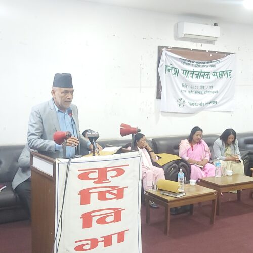 ललितपुर । कृषि तथा पशुपन्छी विकासमन्त्री रामनाथ अधिकारीले समयसापेक्ष विश्लेषण गरेर जैविक खेती र रैथाने बालीलाई नै प्रयोगमा ल्याउनुपर्ने आवश्यकता रहेको बताएका छन् ।