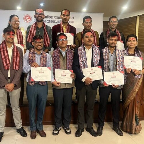 यसैबीच, नवनिर्वाचित कार्यसमितिलाई प्रमाणपत्र वितरण गरिएको छ । यहाँ आयोजित कार्यक्रममा मुख्य निर्वाचन अधिकृत धर्मेन्द्र झाले प्रमाणपत्र वितरण गरेका हुन् । त्यस अवसरमा उनले नवनिर्वाचत कार्यसमितिले सेजनको गरिमालाई थप उचो बनाउँदै आर्थिक क्षेत्रका मुद्दा उठानमार्फत नेपाली मिडियामा सशक्त उपस्थिति जनाउने विश्वास व्यक्त गरे ।