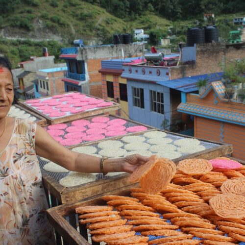 “पोखराबाट दुई लाखको झिनियाको माग आएको थियो,” उनले भने “राम्रोसँग घाम नलाग्दा पोखराको माग पुर्याउन सकिएन् । बेनीकै ग्राहकलाई बल्लतल्ल पुर्याएको छु ।” दसैँलगत्तै बेनीका उद्यमीले तिहारका लागि झिनिया बनाउन थालेका थिए । चामलको पिठो पकाएर त्यसलाई मेसिनमा पेलेर निस्कने चाउचाउको जस्तो त्यान्द्रोलाई दुई दिनसम्म घाममा सुकाएपछि झिनिया तयार हुन्छ ।