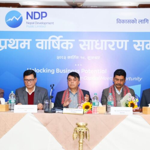 काठमाडौँ । नेपाल डेभलपमेन्ट पब्लिक लिमिटेडको प्रथम वार्षिक साधारणसभा शुक्रवार काठमाडौँमा सम्पन्न भएको छ ।