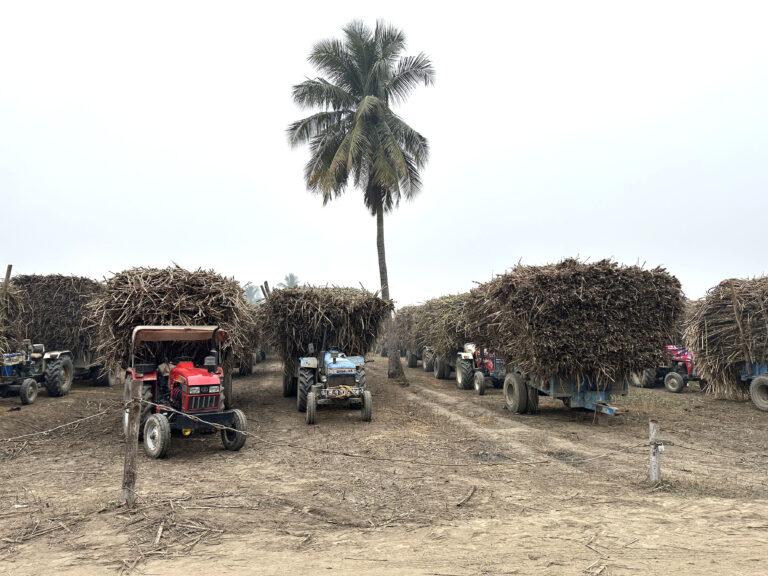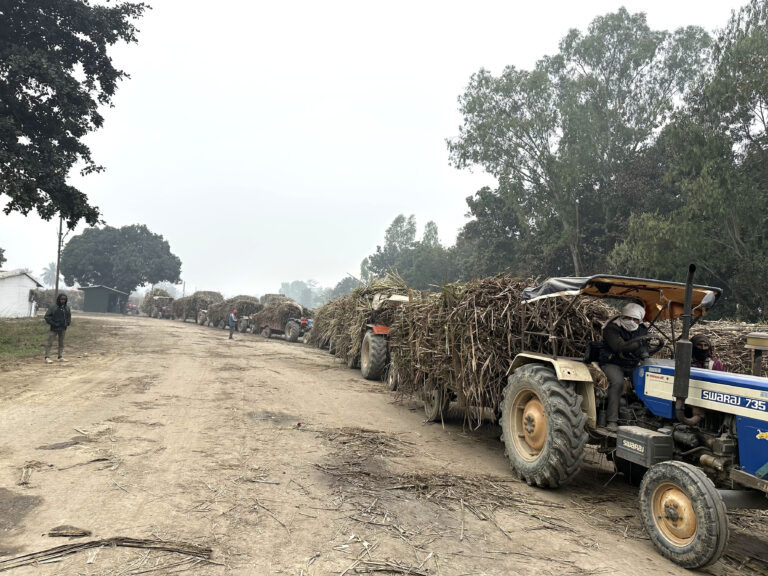 महोत्तरीको रामनगरस्थित एभरेष्ट सुगर एण्ड केमिकल इण्डस्ट्रिज प्रा.लीको हाताभित्र झार्न प्रतिक्षामा रहेका उखु बोकेका ट्याक्टर । किसानले उखुको उचित मूल्य नपाएको गुनासो गर्दै आएका छन् ।