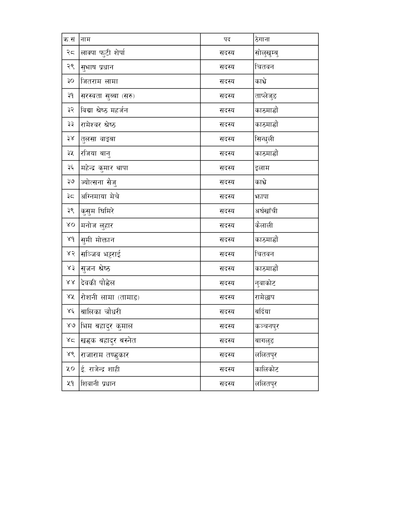 ५१ सदस्यीय पार्टीमा पूर्वसचिव अनुपकुमार उपाध्यायलाई अध्यक्ष प्रस्ताव गरिएको छ । यसअघि, गत साउनमा पार्टीले विवरण बुझाउँदा ज्ञानकुमार तामाङलाई अध्यक्षको रूपमा अघि सारेको थियो । कुलमान समर्थन रहेको भनिएपनि उनको नाम भने समावेश छैन ।