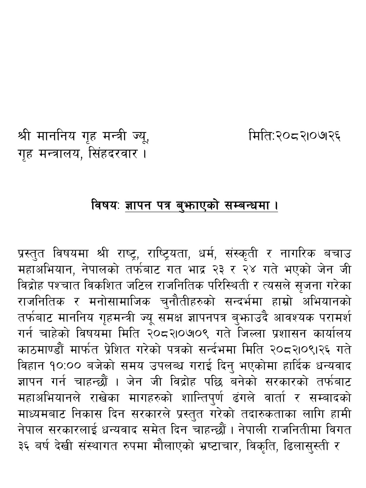 बुधबार गृह मन्त्रालयमा महाअभियानका प्रतिनिधिले सरकारसँग प्रदेश संरचना खारेजसहितका माग पेस गरेका हुन् ।