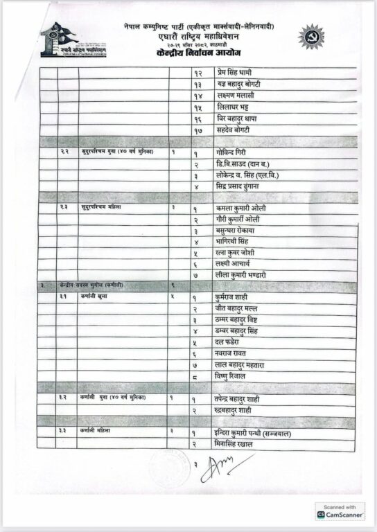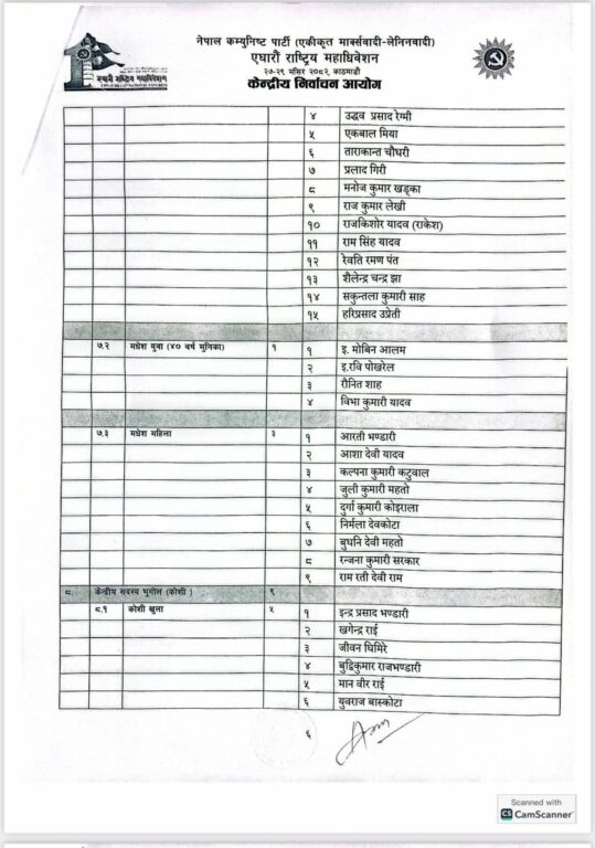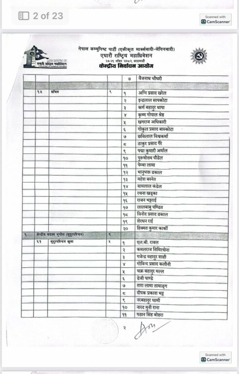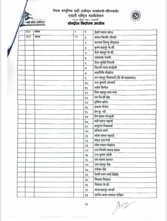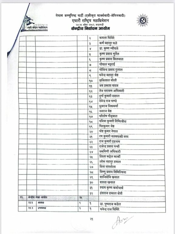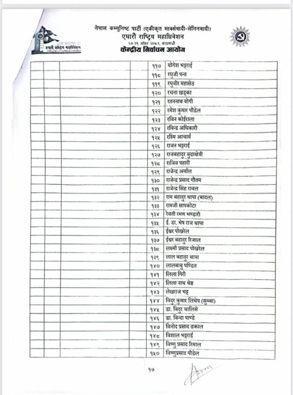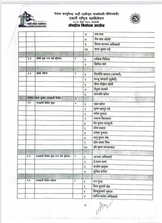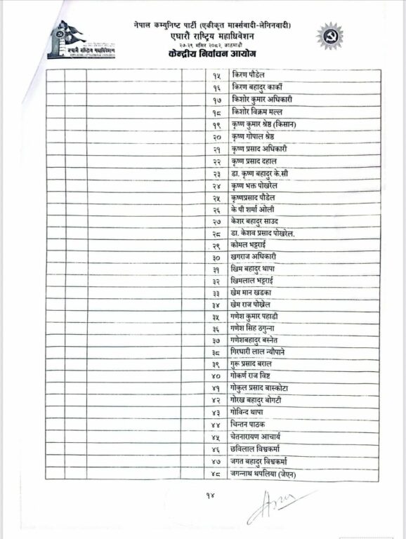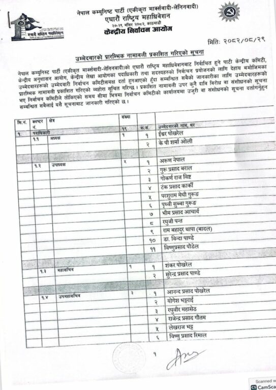 भृकुटीमण्डपमा जारी बन्दसत्रस्थलमा पार्टीको केन्द्रीय निर्वाचन आयोगले राति ९ बजे प्रारम्भिक नामावली प्रकाशन गरेको हो । प्रकाशित नामावलीअनुसार एक अध्यक्ष पदमा वर्तमान वरिष्ठ उपाध्यक्ष ईश्वर पोखरेल र वर्तमान अध्यक्ष केपी शर्मा ओलीले उम्मेदवारी दर्ता गराएका छन् । अन्य पदाधिकारी तथा सदस्यमा उनीहरूको समूह र स्वतन्त्र रूपमा पनि उम्मेदवारी परेको छ ।