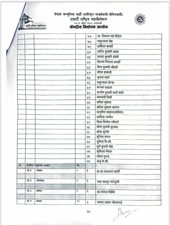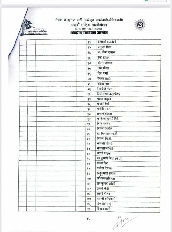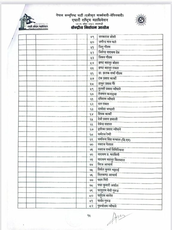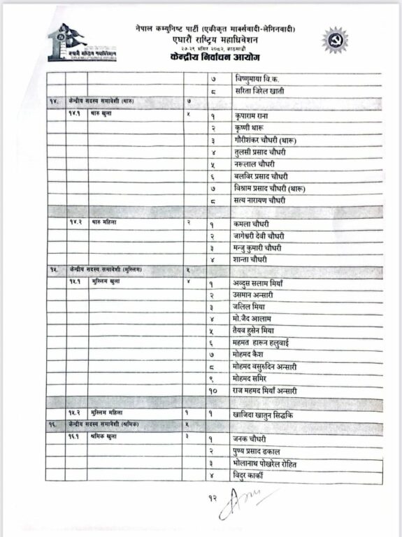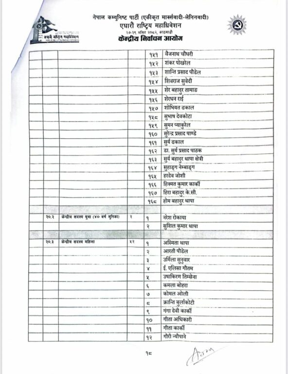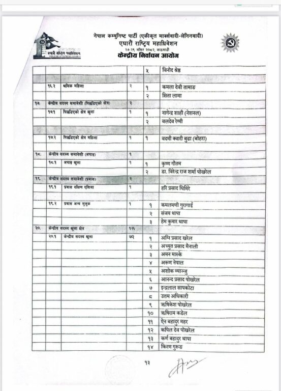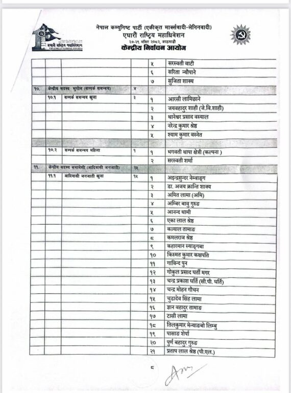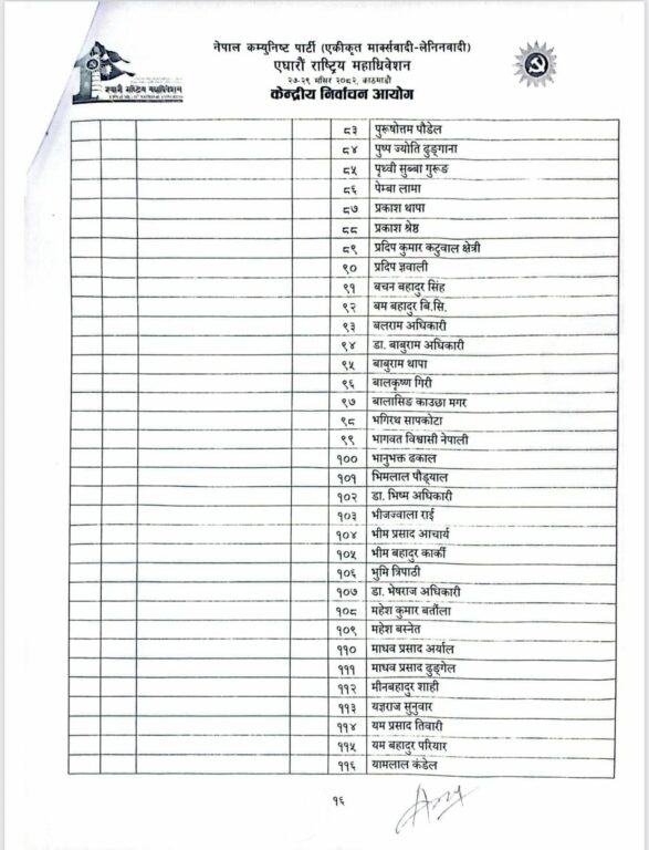 भृकुटीमण्डपमा जारी बन्दसत्रस्थलमा पार्टीको केन्द्रीय निर्वाचन आयोगले राति ९ बजे प्रारम्भिक नामावली प्रकाशन गरेको हो । प्रकाशित नामावलीअनुसार एक अध्यक्ष पदमा वर्तमान वरिष्ठ उपाध्यक्ष ईश्वर पोखरेल र वर्तमान अध्यक्ष केपी शर्मा ओलीले उम्मेदवारी दर्ता गराएका छन् । अन्य पदाधिकारी तथा सदस्यमा उनीहरूको समूह र स्वतन्त्र रूपमा पनि उम्मेदवारी परेको छ ।