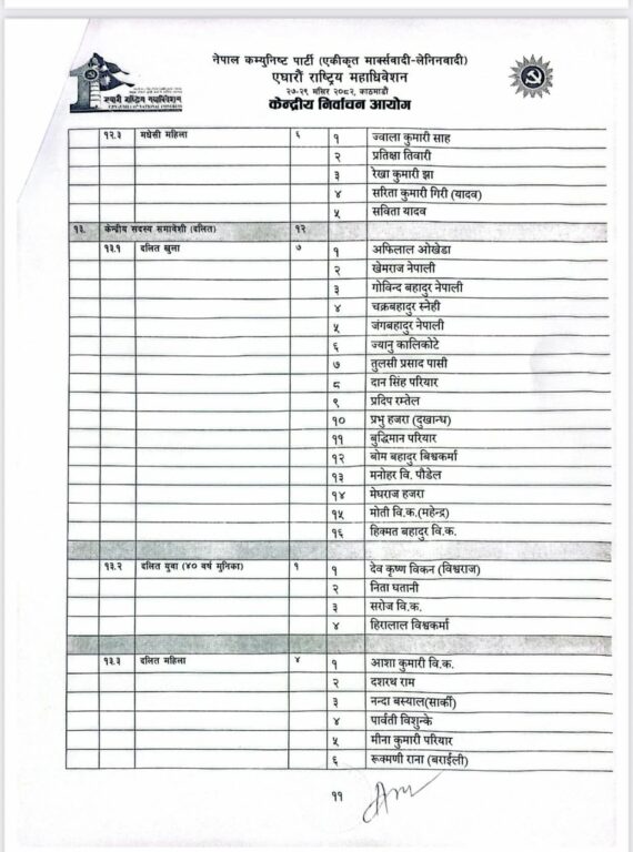 काठमाडौँ । नेपाल कम्युनिष्ट पार्टी (एमाले) को ११ औँ राष्ट्रिय महाधिवेशनबाट नयाँ नेतृत्वका लागि परेका उम्मेदवारको प्रारम्भिक नामावली प्रकाशन गरिएको छ ।