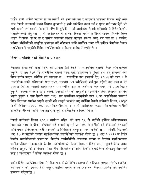 काठमाडौँ । नेपाली कांग्रेसका महामन्त्री गगनकुमार थापाले कांग्रेसको विशेष महाधिवेशन पक्षधरद्वारा आयोजित विशेष महाधिवेशनको बन्दसत्रमा समसामयिक राजनीतिक प्रस्ताव प्रस्तुत गरेका छन् ।