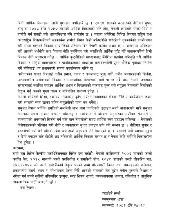 यस्तो छ महामन्त्री गगन थापाद्वारा प्रस्तुत राजनीतिक प्रस्ताव(पूर्णपाठ)