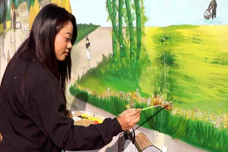 नारायणगढ (चितवन) । खैरहनीको खिचरा महोत्सवस्थलमा पुग्दा एउटा पर्खालले धेरै दर्शकलाई केहीबेर रोक्छ । रङरेखाले सजिएको त्यो पर्खाल कुनै साधारण ‘वाल’ पेन्टिङ होइन, त्यो थारु समुदायको इतिहास, संस्कृति र जीवनशैली बोलिरहेको क्यानभास हो । चितवनको राप्ती नगरपालिका–६ बेल्डियाकी कलाकार सोमिना चौधरीले त्यो क्यानभासमा वास्तविकता भरेकी हुन् ।
