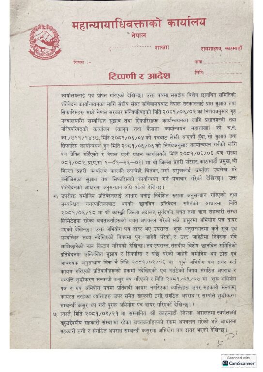 महान्यायाधिवक्ता कार्यालयको यो निर्णयसँग काठमाडौं, रुपन्देही, पर्सा, कास्कीलगायतका सरकारी वकिलको कार्यालयले रास्वपा सभापति लामिछानेविरुद्ध लगाइएको सम्पत्ति शुद्धीकरण र संगठित अपराधको मुद्दा फिर्ता लिने छन् ।