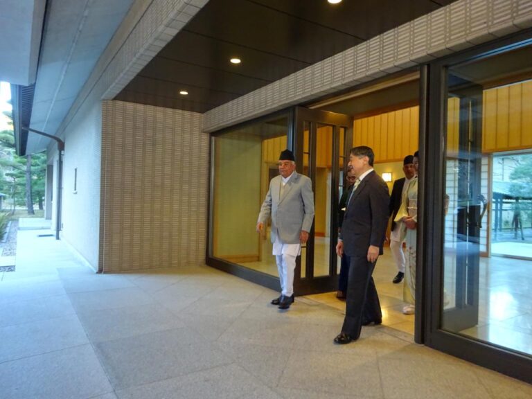 जापान ( टोकियो ) । राष्ट्रपति रामचन्द्र पौडेल र जापानका सम्राट नारुहितो बीच मंगलबार शीष्टाचार भेटवार्ता भएको छ । जापानको चारदिने भ्रमणमा रहेका राष्ट्रपति पौडेल र जापानका सम्राट नारुहितो बीच इम्पेरियल प्यालेस टोकियोमा शिष्टाचार भेटवार्ता भएको हो ।