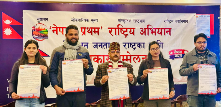 काठमाडौं । नेपाल प्रथम राष्ट्रिय अभियानले फागुन २१ गते हुने प्रतिनिधिसभा निर्वाचनलाई लक्षित गर्दै ’निर्वाचन जनता र राष्ट्रका लागि’ अभियान सञ्चालन गर्ने घोषणा गरेको छ ।