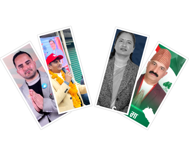 अहिले यस क्षेत्रमा नेपाली कांग्रेस, नेकपा एमाले, नेपाली कम्युनिस्ट पार्टी (नेकपा), राष्ट्रिय स्वतन्त्र पार्टी (रास्वपा)सहित १२ दलका उम्मेदवार चुनावमा होमिएका छन् । आ–आफ्नै एजेण्डा र प्रतिबद्धता लिएर घरदैलो गरिरहेका छन् । कांग्रेसका टेकराज पौडेल, एमालेकी मञ्जु शर्मा चालिसे, नेकपाका ज्ञामनाथ गैरे र रास्वपाका सोम शर्माबीच प्रतिस्पर्धा हुने देखिन्छ । पछिल्लो समय रास्वपामा मतदाताको विश्वास बढिरहेकाले आफ्नो जित पक्का भएको शर्माले दाबी गरे । उनले भने, “अहिले दशैभर रास्वपाप्रति जन लहर छाएको छ, हामी जनचाहनाअनुसार सुशासन केन्द्रित काम गर्न प्रतिबद्ध छौँ ।”