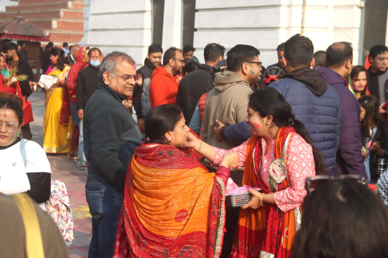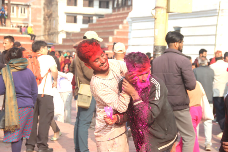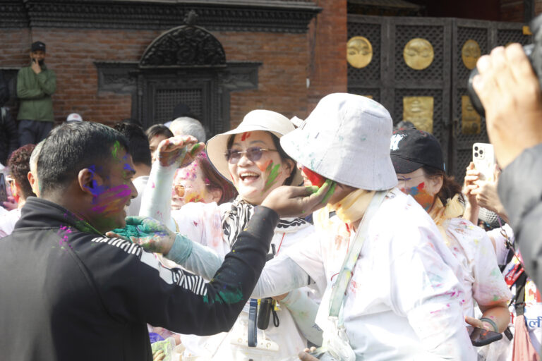 काठमाडौं । रङहरुको पर्व फागुपूर्णिमा(होली) पर्व आज उपत्यका र पहाडी जिल्लामा हर्षोल्लासका साथ एकापसमा रङ दलेर मनाइँदै छ । होलीका अवसरमा आज काठमाडौँको बसन्तपुरमा रङ खेलेर होली मनाइएको छ । बसन्तपुरमा विदेशी पर्यटकले समेत होली मनाएका थिए ।