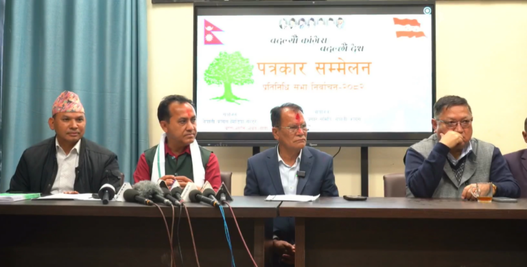 काठमाडौं । नेपाली कांग्रेसले आगामी बिहीबार हुने प्रतिनिधिसभा निर्वाचनबाट आफ्नो दल पहिलो बन्ने प्रक्षेपण गरेको छ । सोमबार पार्टी केन्द्रीय कार्यालय सानेपामा आयोजित पत्रकार सम्मेलनमा कांग्रेस उपसभापति विश्वप्रकाश शर्माले निर्वाचनबाट कांग्रेस पहिलो दल बनेर आउने दाबी गरेका हुन् ।