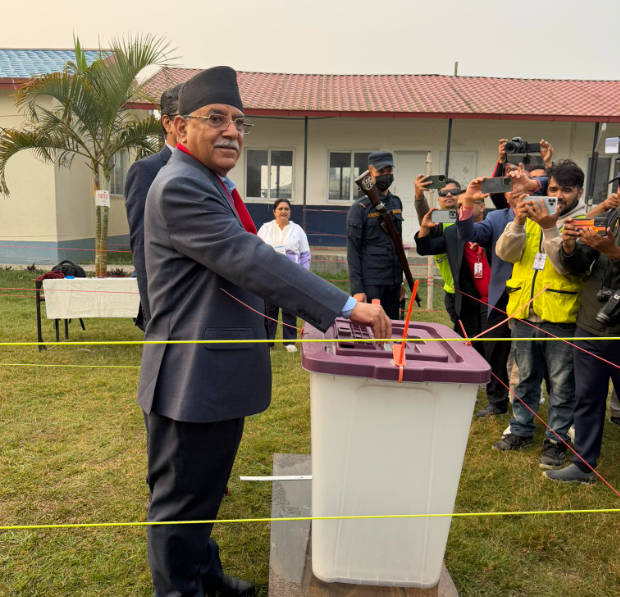 काठमाडौँ । नेपाली कम्युनिस्ट पार्टीका संयोजक पुष्पकमल दाहाल ‘प्रचण्ड’ले मतदान गरेका छन् । बिहीबार बिहानै चितवनको भरतपुर महानगरपालिका–१४ स्थित नेपाल प्रहरी स्कुल शान्तिपुर मतदान केन्द्रमा पुगेर मतदान गरेका हुन् ।