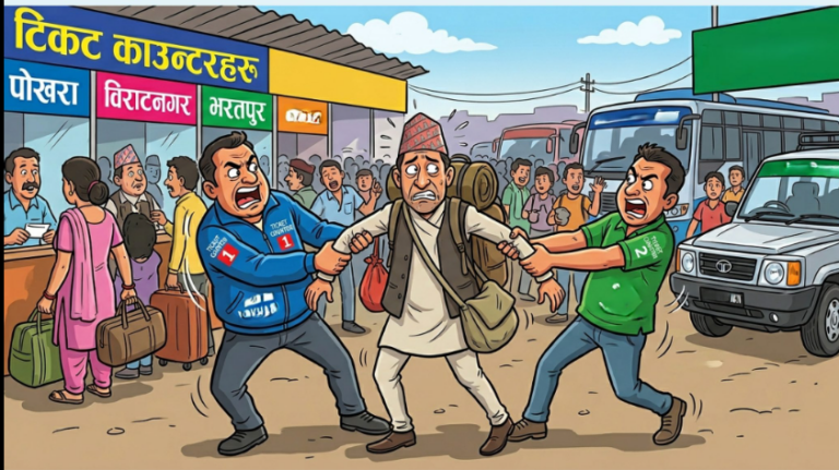 ती स्थानमा सञ्चलित टिकट काउन्टरमा आफूहरूले भनेको सवारी साधनमा यात्रा गर्नुपर्छ भनी सर्वसाधारणलाई जबरजस्ती तान्ने, दुःख हैरानी दिई अभद्र व्यवहार गर्ने व्यक्तिलाई पक्राउ गरिएको परिसरका प्रवक्ता प्रहरी उपरीक्षक पवनकुमार भट्टराईले जानकारी दिए ।