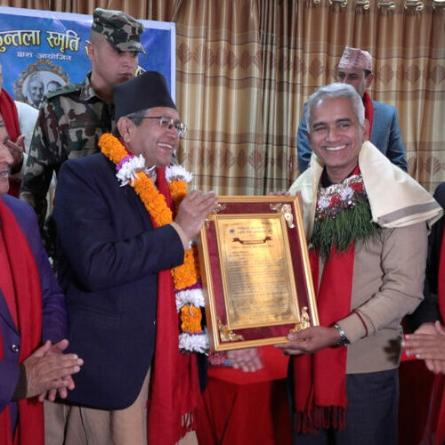 काठमाडौँ । परशुराम–शकुन्तला स्मृति सेवा प्रतिष्ठानले वरिष्ठ मुटुरोग विशेषज्ञ प्रा डा भगवान कोइरालालाई सम्मान गरेको छ । प्रतिष्ठानद्वारा आज यहाँ आयोजित कार्यक्रममा प्रतिनिधिसभाका सभामुख देवराज घिमिरेले उनलाई सम्मान प्रदान गरेका हुन् ।