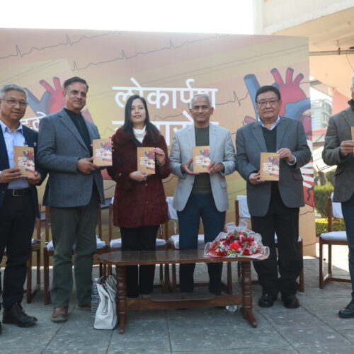 नेपाल प्रज्ञाप्रतिष्ठानको डबलीमा आज आयोजित समारोहमा वरिष्ठ नेत्ररोग विशेषज्ञ डा. सन्दुक रुइत, वरिष्ठ मुटुरोग विशेषज्ञ डा. भगवान् कोइराला, धुलिखेल अस्पतालका संस्थापक डा. रामकण्ठ मकाजु, मुटुरोग विशेषज्ञ डा. स्मृति शाक्य, हास्यकलाकार हरिबंश आचार्य र लेखक कोजुले लोकार्पण गरे ।