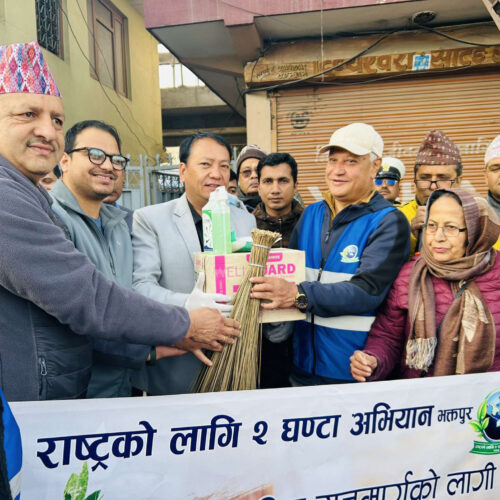 भक्तपुर । शनिबार कहिले सिमसिम पानी त कहिले हल्का झुल्किएको घाम । मध्यपुरथिमि नगरपालिका–१ लोकन्थलीस्थित अरनिको राजमार्गखण्डको सरसफाइमा ‘राष्ट्रका लागि दुई घण्टा अभियान’लाई साथ दिन हातमा कुचो र डस्विन बोक्दै सडकमा पुगे बागमती प्रदेशका स्वास्थ्यमन्त्री किरण थापा ।