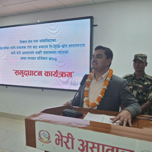 मन्त्री पौडेलले भेरी अस्पतालमा सिकलसेलको छुट्टै उपचार कक्ष सञ्चालन गरिएपछि सहज भएको बताउँदै सो रोगबाट जोगाउन समुदायमा जनचेतना फैलाउन आवश्यक रहेको धारणा व्यक्त गरे ।