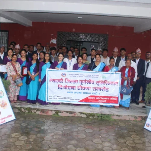 म्याग्दी । म्याग्दी पूर्णखोप सुनिश्चितता एवं दिगोपना जिल्ला घोषणा भएको छ । आइतबार सदरमुकाम बेनीमा आयोजित एक समारोहबीच जिल्लालाई चालु आर्थिक वर्षमा गण्डकी प्रदेशमै पहिलो पूर्णखोप सुनिश्चितता एवं दिगोपना जिल्ला घोषणा गरिएको हो ।