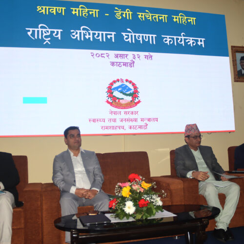 “डेङ्गी साउन महिनामा उच्च सङ्क्रमण हुने सुरुवाती महिना हो”, उनले भने, “यस महिनामा सतर्कता अपनाउन सके सङ्क्रमण कम गर्न सकिन्छ। त्यसैले सम्भावित जोखिम नियन्त्रण गर्नका लागि साउनलाई सचेतना अभियान महिना घोषित गरिएको हो।”