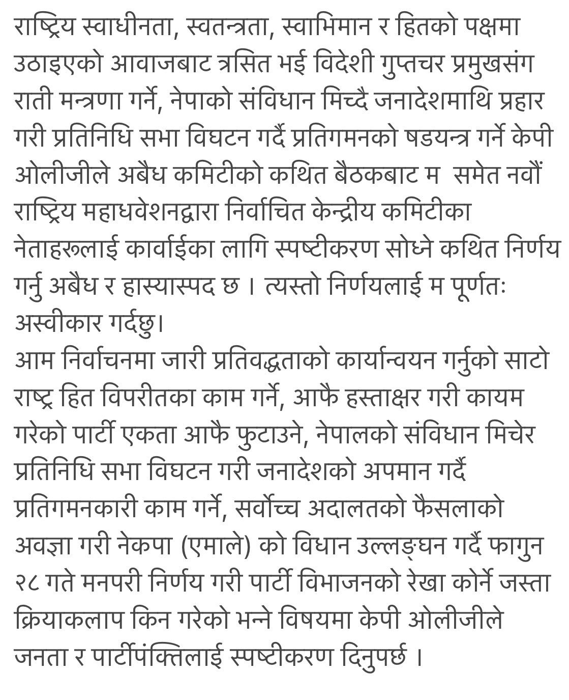 शनिबार नेकपा एमालेको ओली पक्षको केन्द्रीय कमिटी बैठकले स्पष्टीकरण सोध्ने निर्णय गरेपछि सामाजिक संजालमार्फत रावलले यो पार्टी अध्यक्ष केपी शर्मा ओलीको निरंकुश स्वेच्छाचारी प्रवृत्तिको द्योतक भएको बताएका हुन् । स्पष्टीकरण अबैध र हायास्पद भन्दै रावलले यो निर्णय अस्वीकार्य भएको बताएका छन् । रावलले लेखेका छन्ः