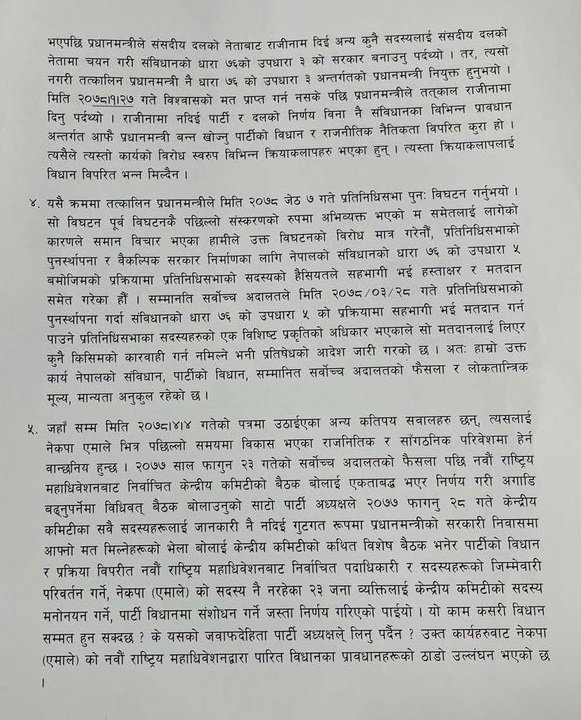 एमालेका २२ सांसदको स्पष्टीकरणः देउवालाई विश्वासको मत संविधान र अदालतको फैसलाअनुसार