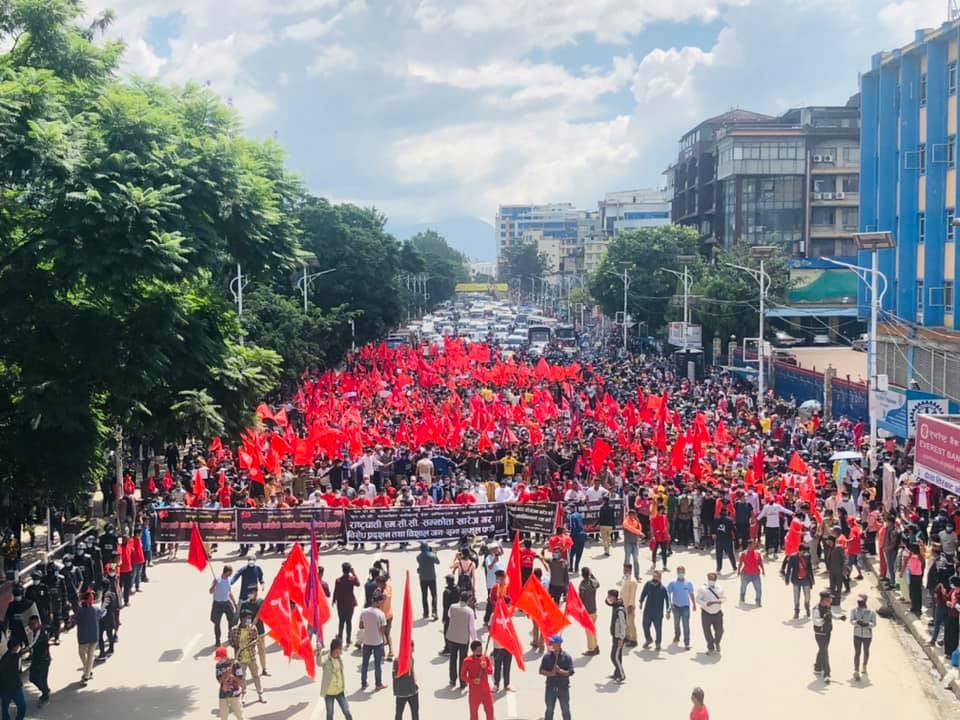 काठमाडौँ । अमेरिकी सहयोग परियोजना मिलेनियम च्यालेन्ज कर्पोरेसन(एमसीसी)को विरोधमा नेत्रविक्रम चन्द नेतृत्वको नेकपाले काठमाडौंमा प्रदर्शन गरेको छ । सोमबार माइतीघरबाट सुरु भएको प्रदर्शनमा महासचिव नेत्रविक्रम चन्द विप्लव, नेताहरु खड्गबहादुर विश्वकर्मा, हेमन्तप्रकाश वलीलगायतका नेताहरु पनि सहभागी भएका छन् ।